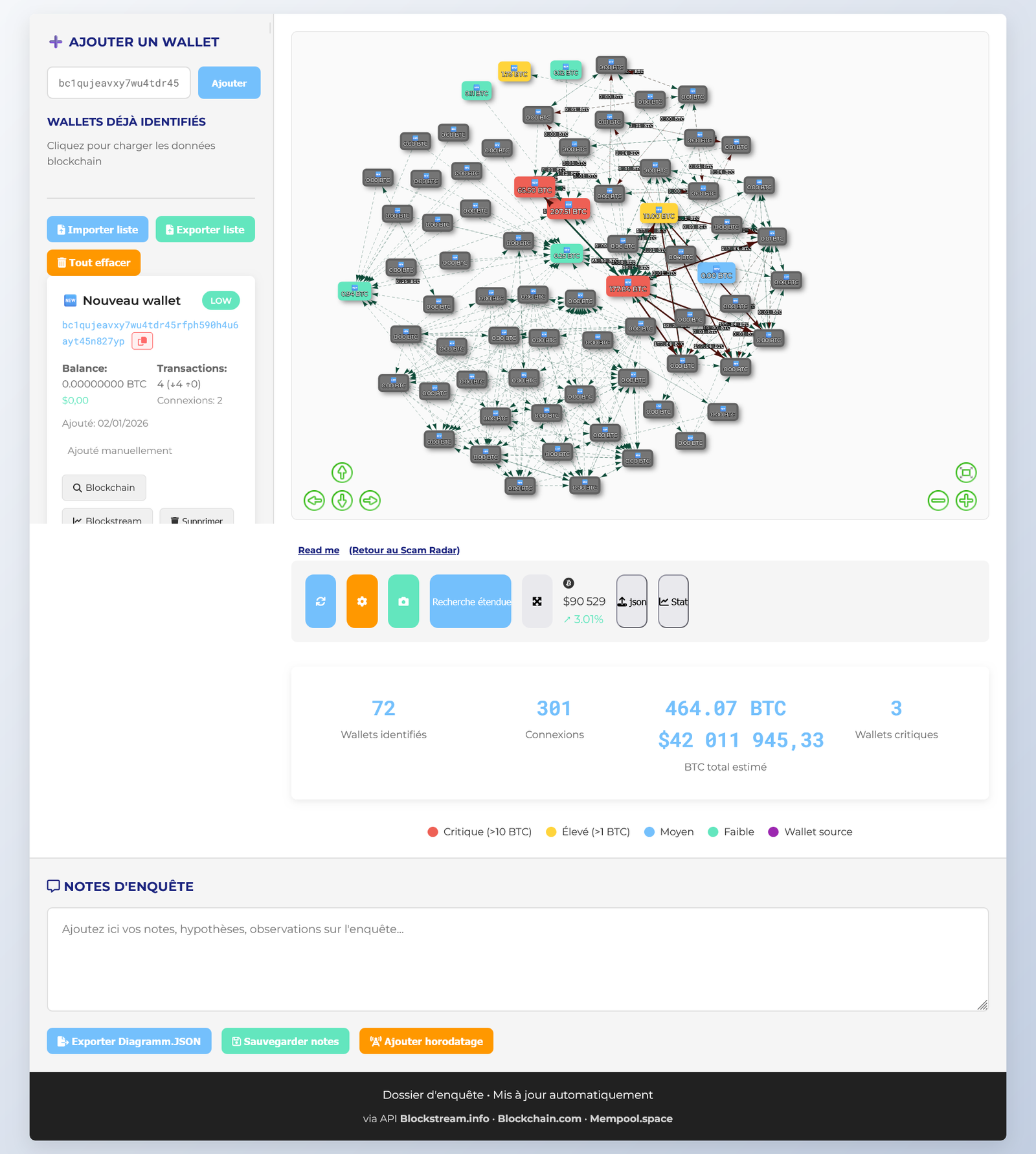 Outils d'analyse blockchain, visualisation de datasets complexes, dashboards d'investigation pour journalistes ou chercheurs.